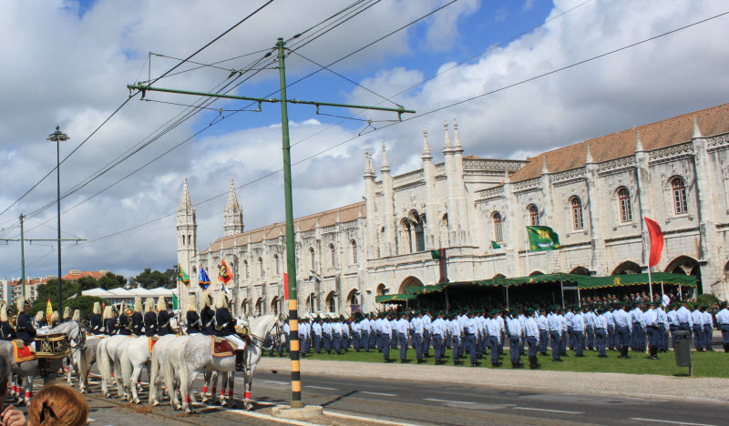 Arrival to Belém. What’s that? Impossible to get to Jerónimos, impressive parade in front of it. National Guard’s Day! Ok, we go out of the bus and go and watch it. Hei,hei, pay attention, the President of the Republic is coming! Is it because of us? We stand behind the horses, more than 50 of them. Take a picture of Mr. Cavaco Silva!” It’s the first time I see him, flesh and bone!” one of our Tourism students says. Take a picture. The National anthem is played – Portuguese teachers and students sing it loud and clear.